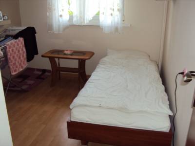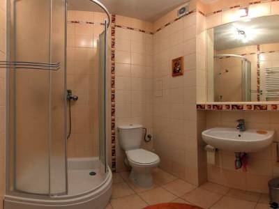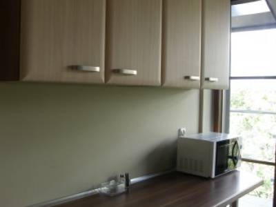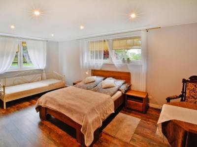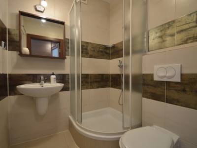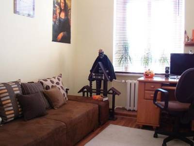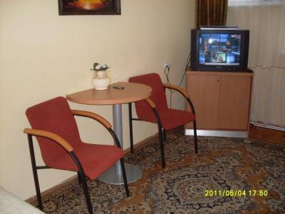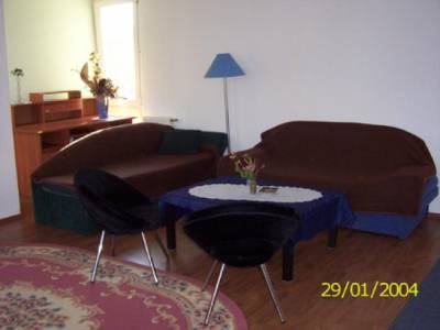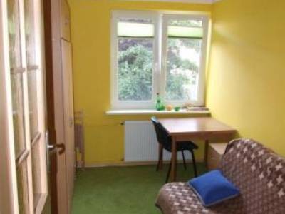 Apartament składa się z dwóch pokoi, korytarza i łazienki (prysznic). W większym pokoju znajduje...