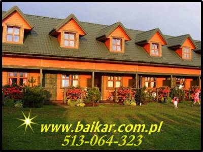 Zapraszamy na wczasy i wypoczynek w drewnianych domkach 4os., 6-8os. i pokojach. Mamy duży zielony...