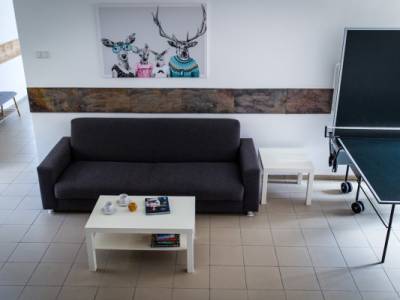 W obiekcie znajduje się kuchnia z pełnym wyposażeniem, jadalnia, salka z kominkiem do gry w tenisa...
