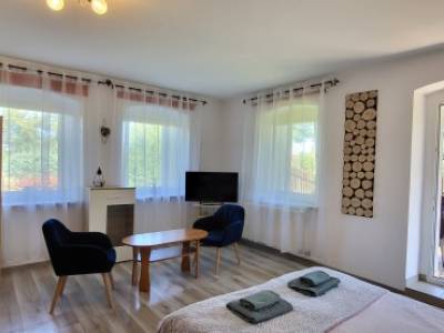 Apartamenty gościnne w oddzielnych, całorocznych domkach na słonecznej, leśnej polanie tuż przy...