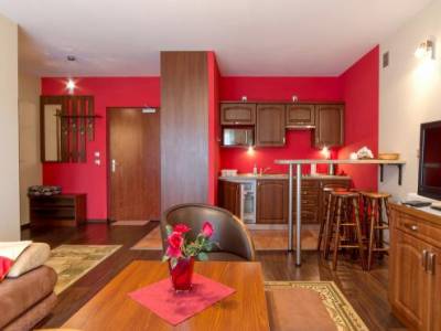 Wygodny apartament z balkonem, dziennym pokojem z aneksem kuchennym. Sypialnia z podwójnym łóżkiem....