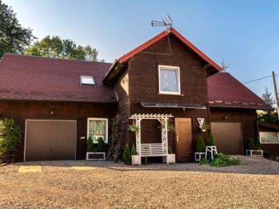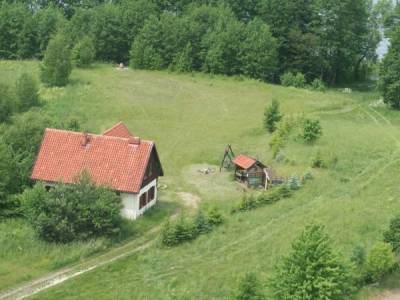 Domek pięknie położony w enklawie ciszy i spokoju, wśród zieleni i śpiewu ptaków z...
