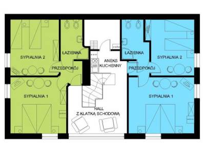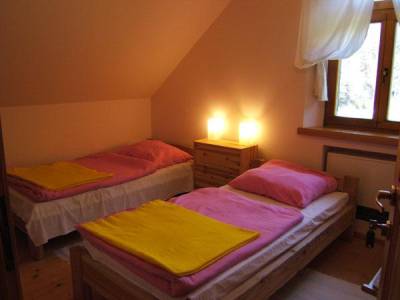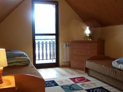Pokoje na piętrze domu jednorodzinnego. Apartament składa się z dwóch pokoi - większy pokój...