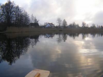 Domek przy wodzie z pomostem. Dwie sypialnie oraz salon z kominkiem. Dostęp do łódki oraz rowerek...