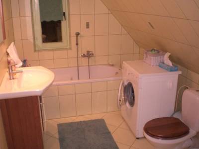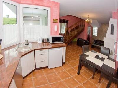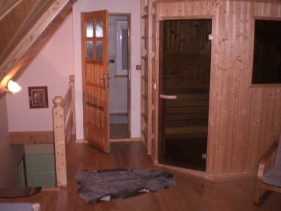 W domu 2 łazienki, salon z kominkiem, aneks kuchenny w pełni wyposażony, 3 pokoje z tv NC+ sauna,...