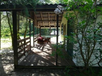 Z domku do jeziora jest około 100m. Domek jest w pełni wyposażony, posiada pokój dzienny z...