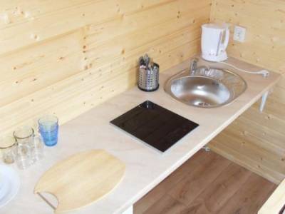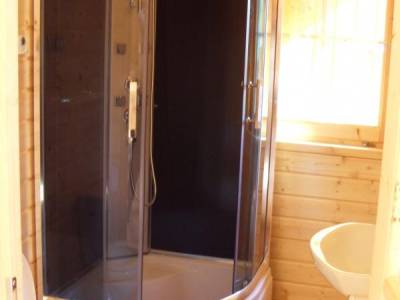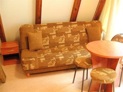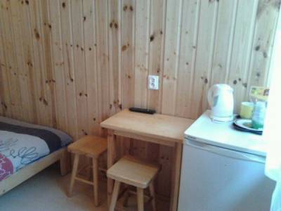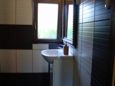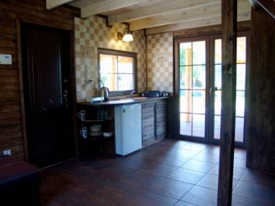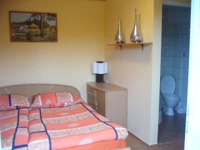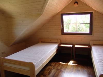 pokoje 3 osobowe z łazienkami. Domek dla 3-5 osób z aneksem kuchennym.