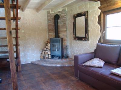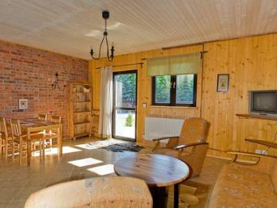 Domek murowany, całoroczny Dół domku - salonik: tapczan 2osob., TV sat, kominek - aneks kuchenny:...