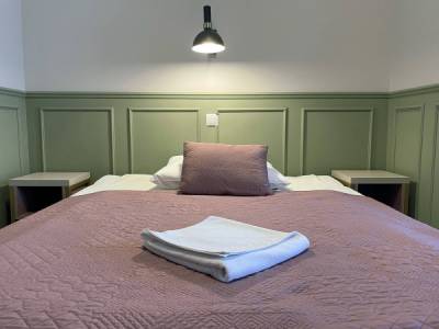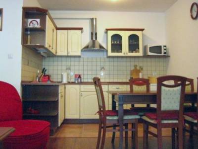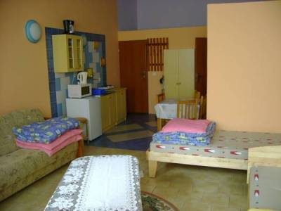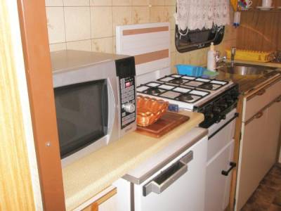 Dwupokojowa kwatera z aneksem kuchennym wyposażona w: lodówkę, kuchenkę gazową, mikrofalówkę,...