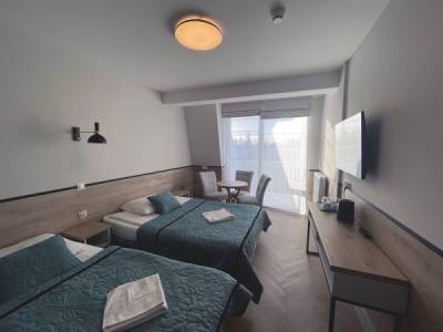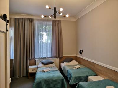 Noclegi wypoczynkowe 2 osobowe pokoje, w każdym 2 łóżka, telewizor, stół, szafa. Do...