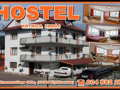 Hostel Krynica w Krynicy-Zdroju. Obiekt jest położony przy głównej ulicy w kierunku Muszyny...