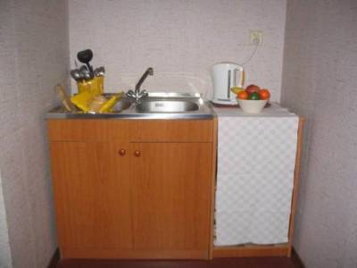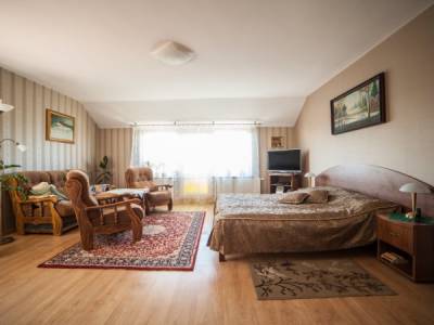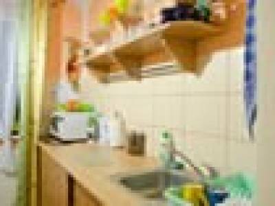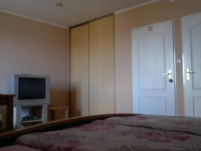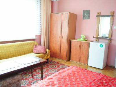Apartament składa się z dwóch pokoi, korytarza i łazienki (prysznic). W większym pokoju znajduje...