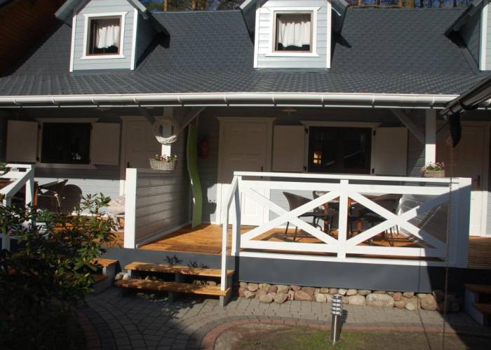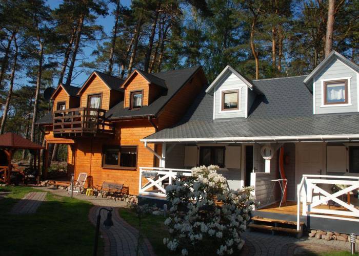 Zapraszamy państwa do wypoczynku w jednym z naszych domków, apartamentu lub pokoi (domki i pokoje, apartament posiadają niezależne wejścia) położonych w odległości ok. 50 metrów (do zejścia około 150 m)od piaszczystej plaży.