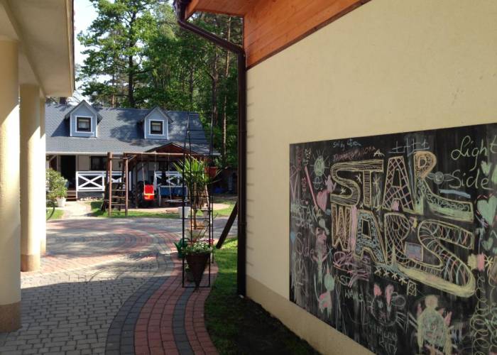 Całość znajduje się w otoczeniu lasów sosnowych, teren jest zielony, ogrodzony o całkowitej powierzchni 1300 metrów kwadratowych.
