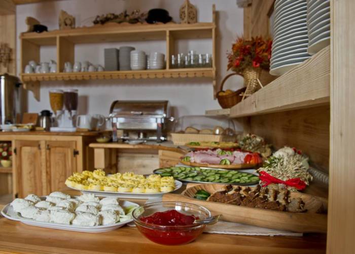 Naszym gościom proponujemy całodzienne wyżywienie. Serwujemy domową kuchnię, naturalne wyroby tutejszych producentów. Do obiadokolacji proponujemy pyszny kompot z naszych letnich przetworów. Po obiadokolacji w ramach deseru zapraszamy na domowe ciasto, codziennie zachwycimy innym wypiekiem z naszego pieca. Posiłki wydajemy w godzinach - śniadania 8-10, obiadokolacje od 16-19. Życzymy Państwu smacznego.