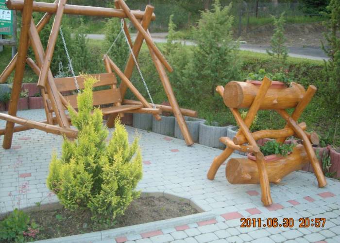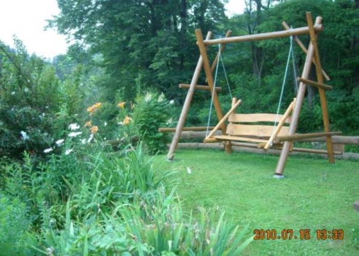 Obok domu znajdują się ławeczki, altana oraz dużo zieleni. W ogrodzie można rozstawić kilka namiotów.