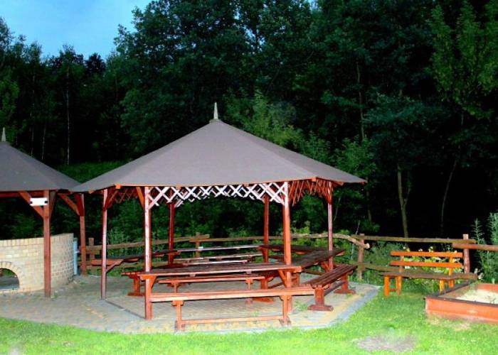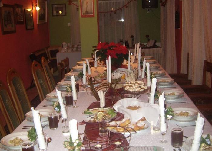 Naszym gościom oferujemy smaczną domową kuchnię. Posiłki wydawane są w jadalni. Aby Państwa pobyt był w pełni relaksujący na ogrodzie z drzewkami owocowymi postawiliśmy zadaszonego grilla, altanę mieszczącą do 50 osób, letni basen ogrodowy dla dużych i małych, leżaki oraz rowery na eskapady wokół Kazimierza. Państwa pociechy mogą pobujać się na huśtawce, polepić babki w piaskownicy, popluskać w dziecięcym basenie, pograć w piłkę na boisku mieszczącym się w wąwozie tuż przy naszym domu, a zimą pozjeżdżać na sankach z pobliskich pagórków.