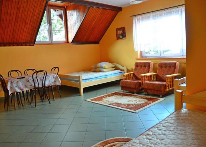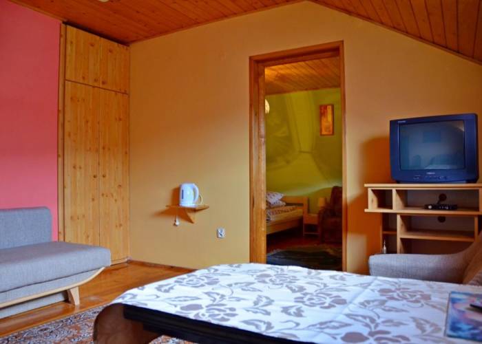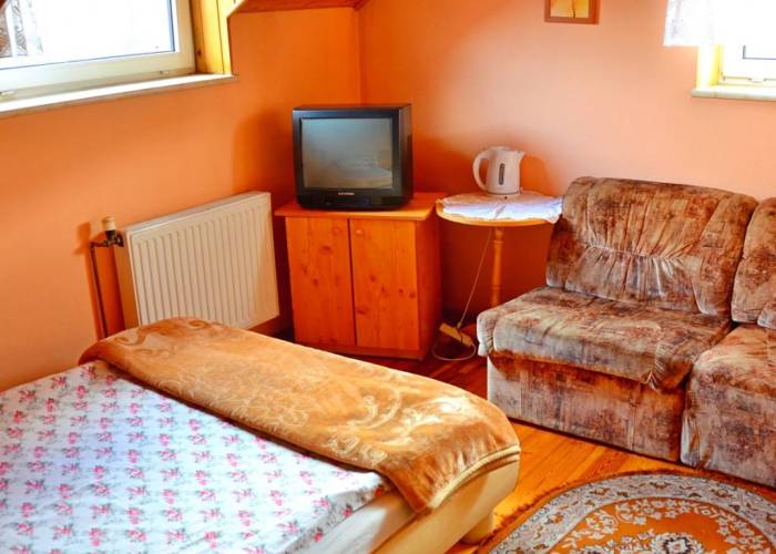 Dysponujemy 26 miejscami noclegowymi w komfortowych pokojach z łazienkami.