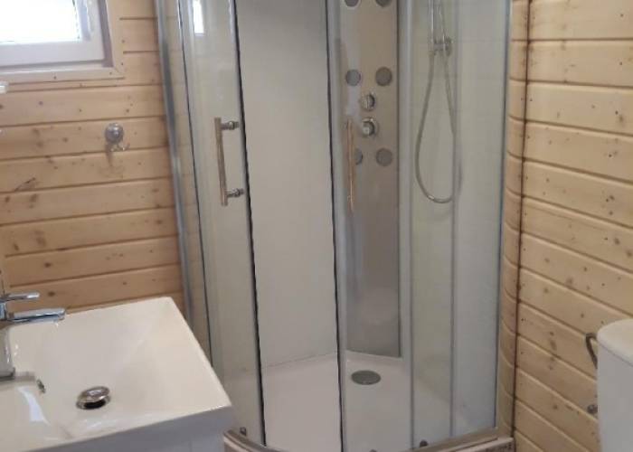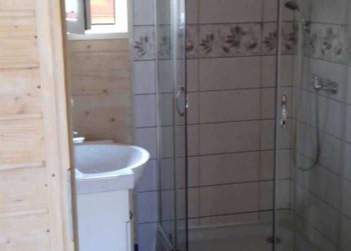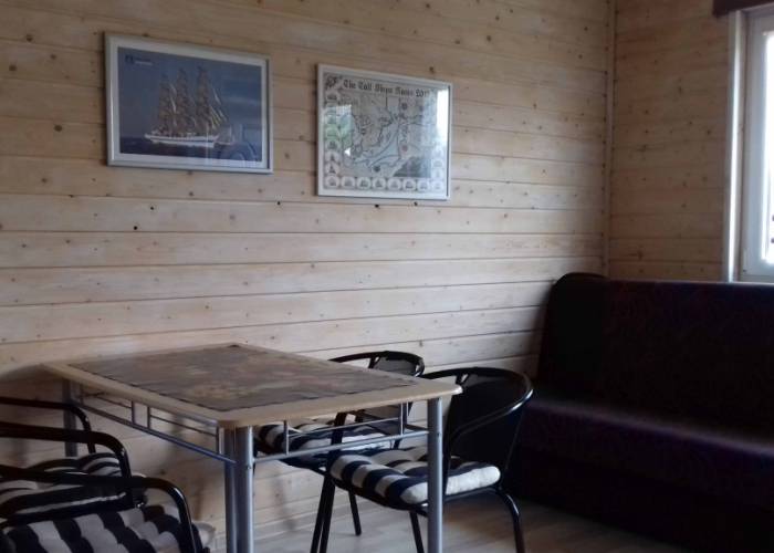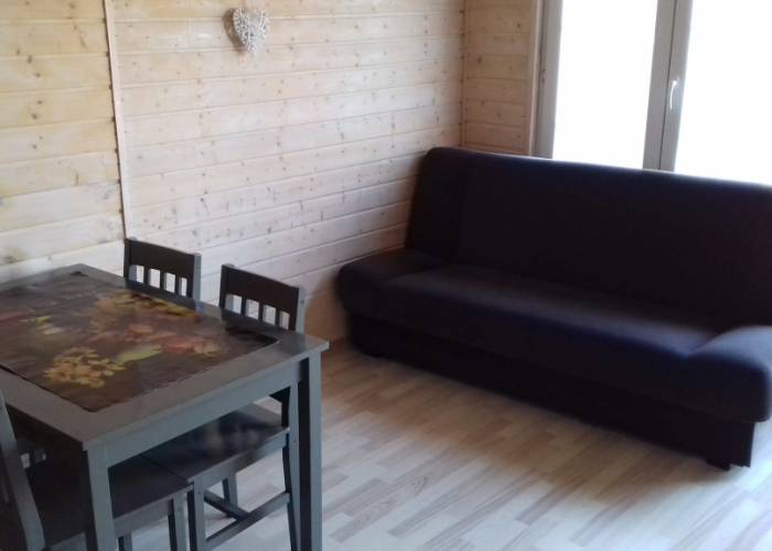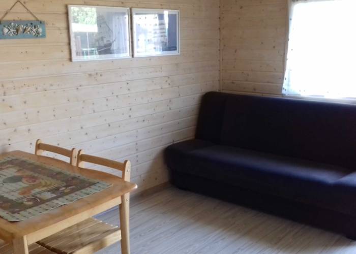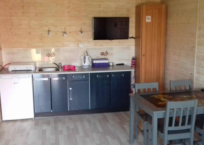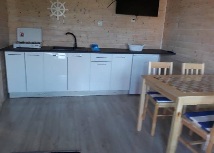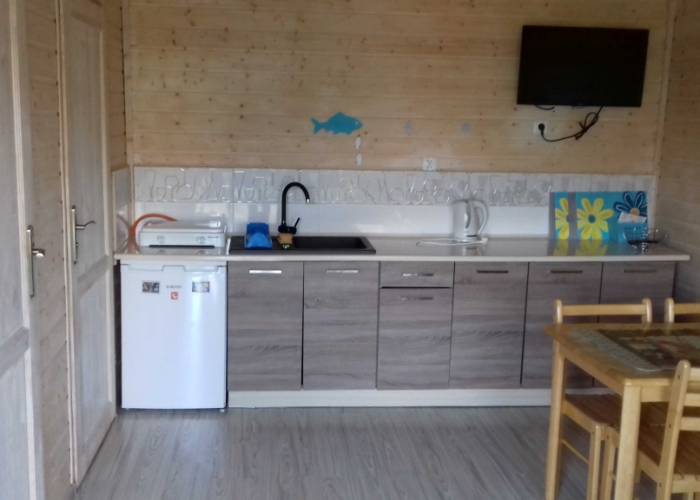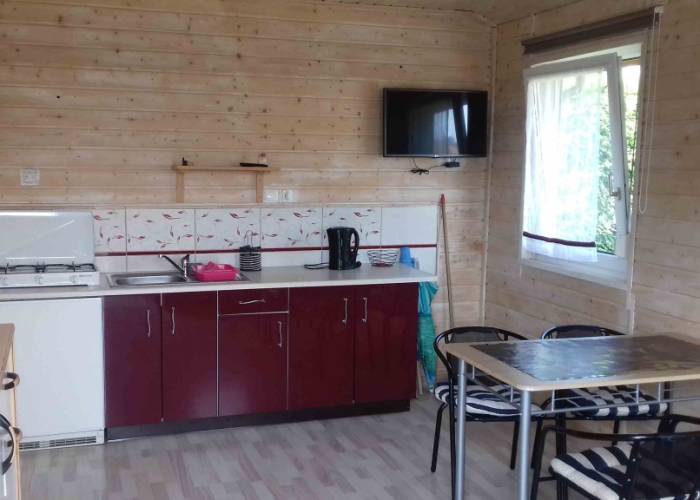 Każdy domek drewniany posiada salon, sypialnię, kuchnię, łazienkę i WC. Miejsce do spania dla 4,5 osób. Dostęp do mediów, woda, prąd. W każdym domku istnieje możliwość przygotowania posiłków w kuchni wyposażonej w czajnik elektryczny, lodówkę, naczynia, sztućce i kuchenkę gazową.