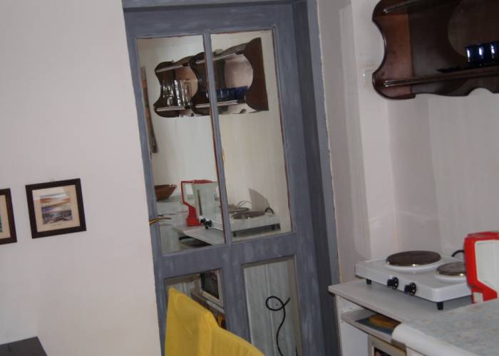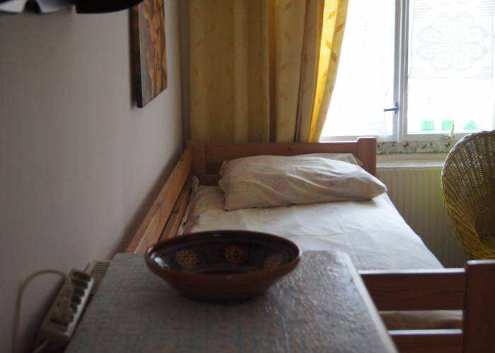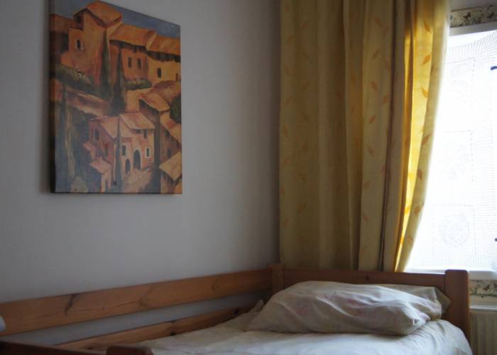 . W drugim ,lewym pokoju może nocować do 4 osób.jest w nim podwójne 140 cm łóżko i dwa jednoosobowe.Szafa,stoł,4 krzesła. . W. małym korytarzyk prowadzacym do przylegającej do pokoju łazienki,urządzony jest mały aneks kuchenny. Wyposażony w kuchenkę,lodówkę,garnki ,naczynia i sztućce.