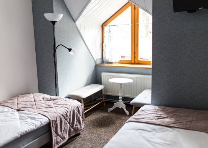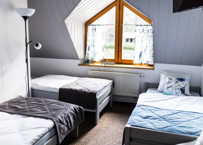 - pokojami 2, 3, 4 osobowymi (30 miejsc noclegowych)