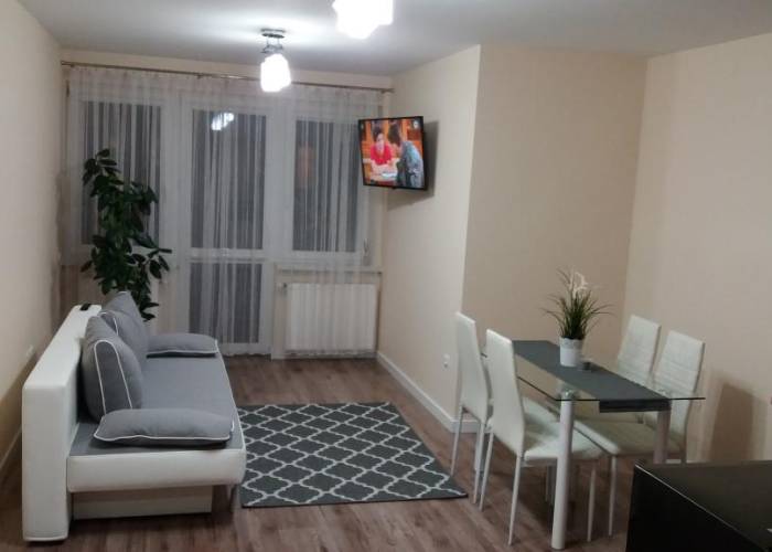 Mieszkanie położone na parterze w pełni umeblowane z pełnym węzłem sanitarnym. Mieszkanie nowe na wyłączny użytek.