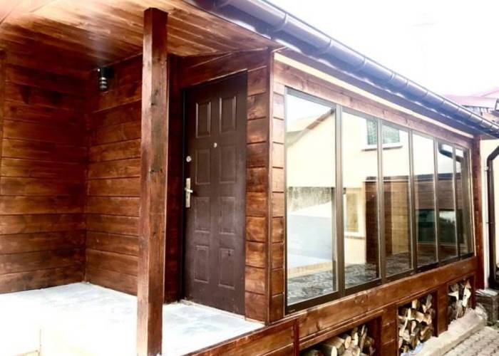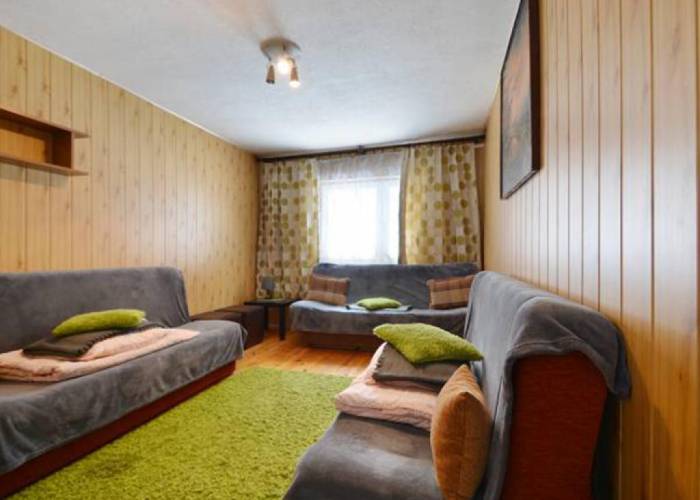 - Domek: 2 pokoje, kuchnia w pełni wyposażona, łazienka, przedpokój, w każdym pokoju 3 podwójne wersalki, TV, WiFi centralne ogrzewanie, ganek, ok. 50 m2 pow.
