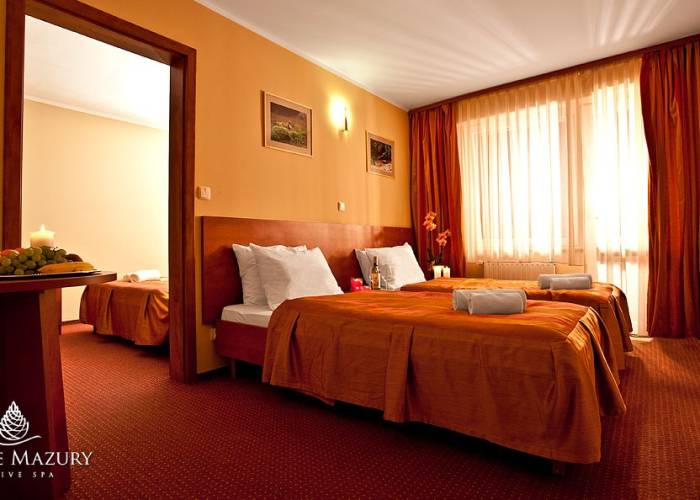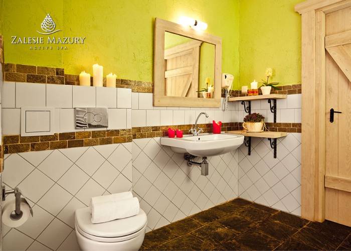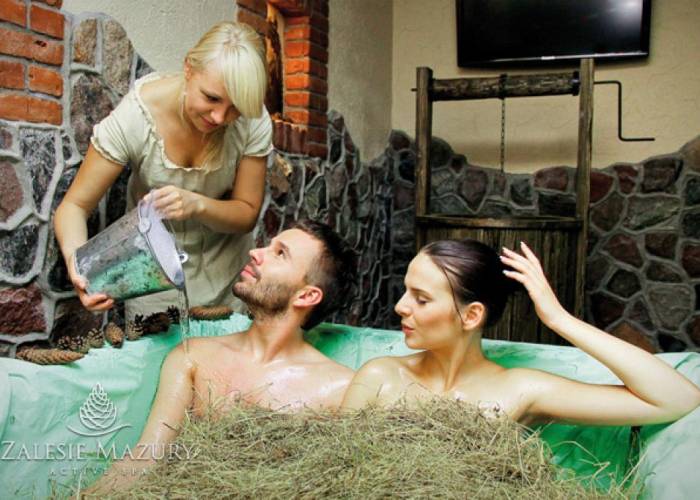 Wśród mazurskich lasów i jezior powstało naturalne Spa silnie związane z tradycją Warmii i Mazur. Myślą przewodnią stworzenia mazurskiego Spa&Wellness było wykorzystanie otaczającej nas natury do opracowania tradycyjnych zabiegów leczniczo-upiększających. Niepowtarzalna regionalna architektura Spa pozwoli Państwu przenieść się do magicznej krainy relaksu i wypoczynku. Zabiegi oparte na naturalnych składnikach wykonywane przez naszych specjalistów pozwolą Państwu oderwać się od codziennych obowiązków a przy okazji odzyskać pełnię sił witalnych i wewnętrzną harmonię. Każdy zabieg w naszym mazurskim SPA to swoisty rytuał w trakcie którego dostarczymy Twojej duszy i ciału niezapomnianych doznań. Wszystkie zabiegi przeprowadzamy w oparciu o naturalne składniki i kosmetyki powstałe w oparciu o naturalne surowce. Posiadamy 5 gabinetów zabiegowych w tym pokój masażu dwa dwojga. Specjalny rabat dla naszych gości na wszystkie zabiegi z cennika detalicznego w wysokości 10%! Nasze SPA dysponuje również mazurską Krainą Relaksu w której macie Państwo do dyspozycji: