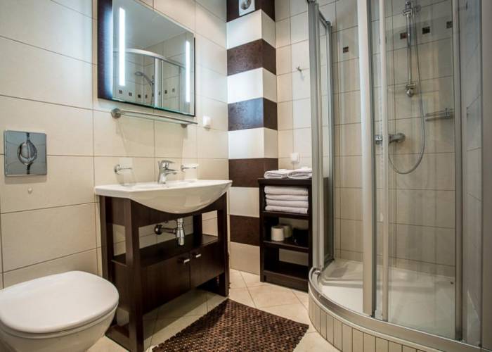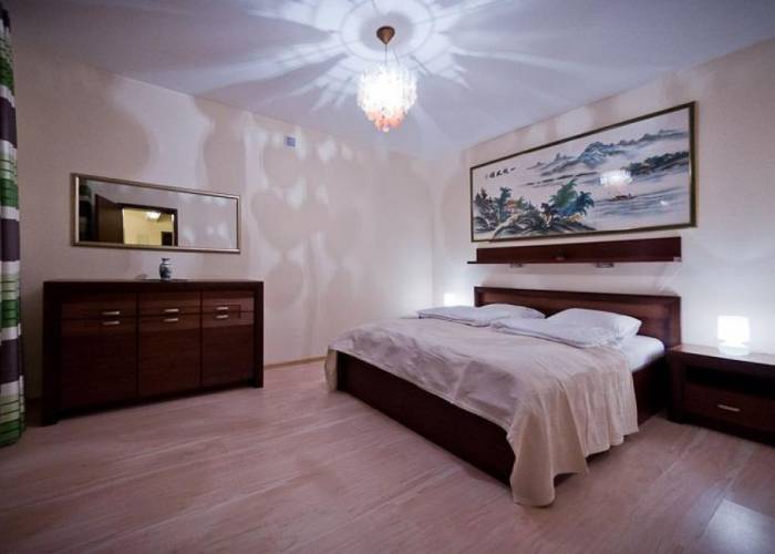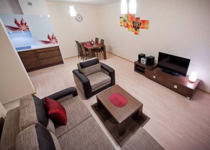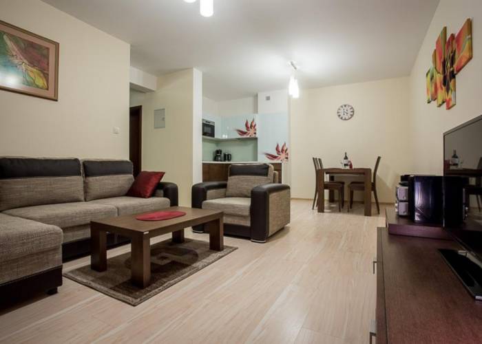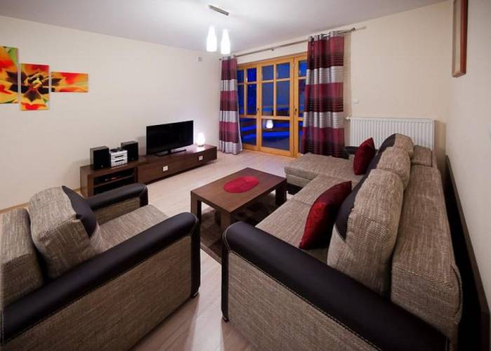 • Każdy apartament przeznaczony jest dla maksymalnie 4 osób (łoże małżeńskie w sypialni oraz rozkładana kanapa w salonie)