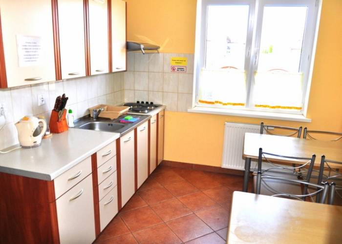 - kuchnia kompletnie wyposażona z miejscami na przygotowanie i spożycie posiłków,