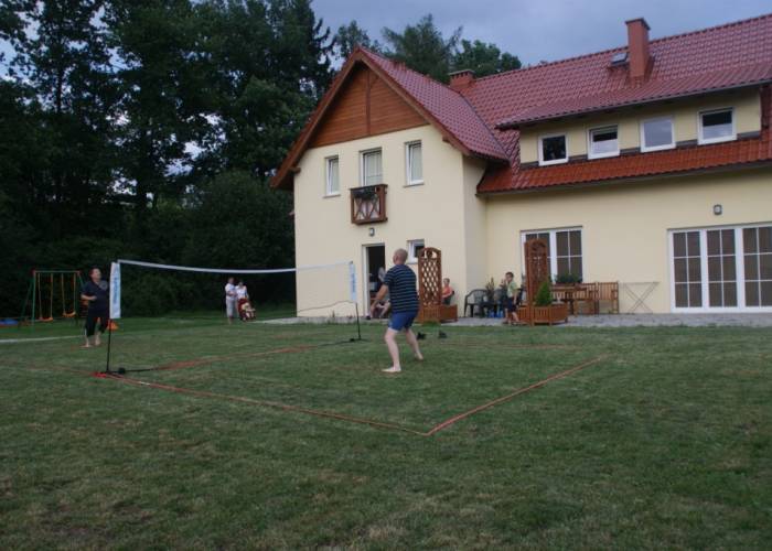 Na terenie obiektu znajduje się duży ogród, parking, miejsce na grilla i ognisko, a w okresie letnim także boisko do badmintona oraz batuta do skakania.