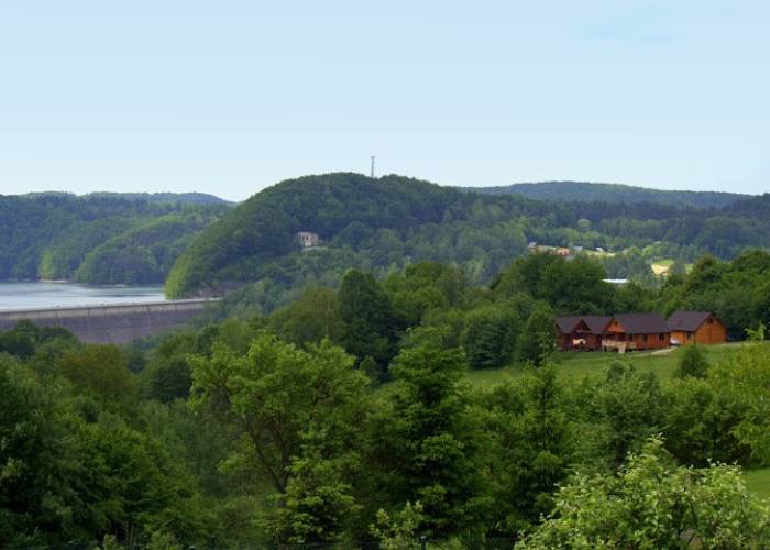 W linii prostej do zapory jest około 600m, drogą asfaltowa ponad kilometr.