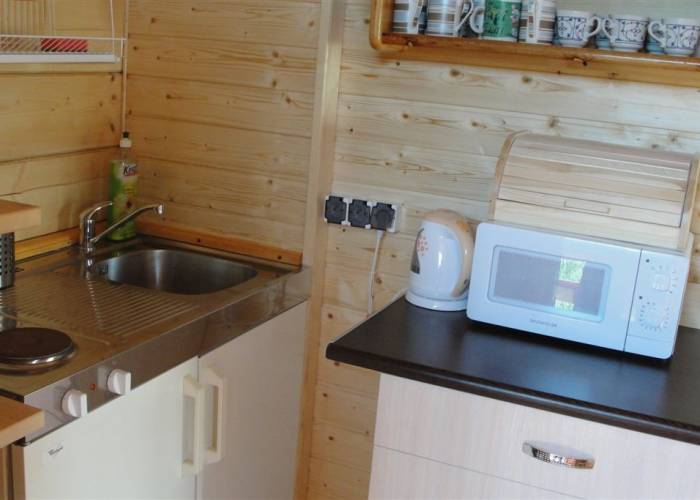 Każdy domek posiada kompletne wyposażenie kuchni, kuchenkę mikrofalową, grill, dostęp do ogniska oraz TV satelitarną.