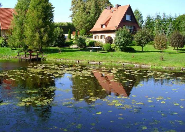Domki położone na terenie gminy Dubeninki, na obrzeżach Puszczy Rominckiej w bezpośrednim sąsiedztwie jeziora Przerośl.