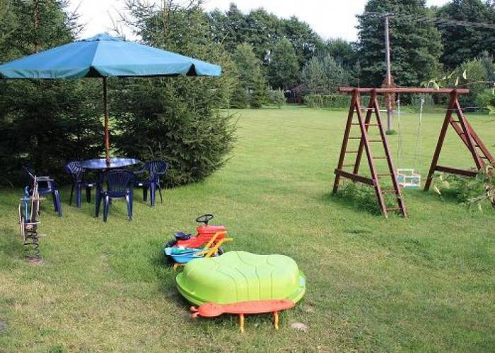 - pomost nad jeziorem i nieduże bezpieczne kąpielisko dla dzieci (większe kąpielisko w odległości ok 300m)