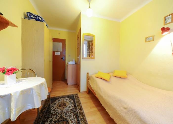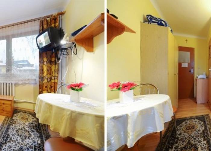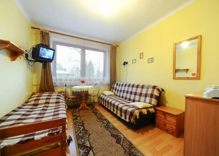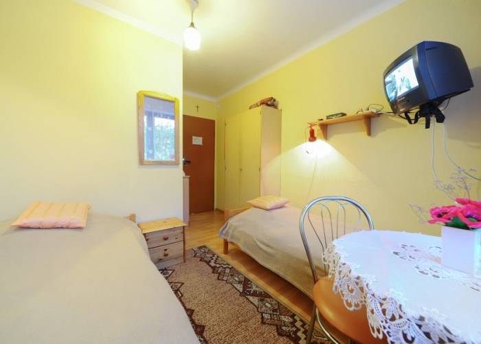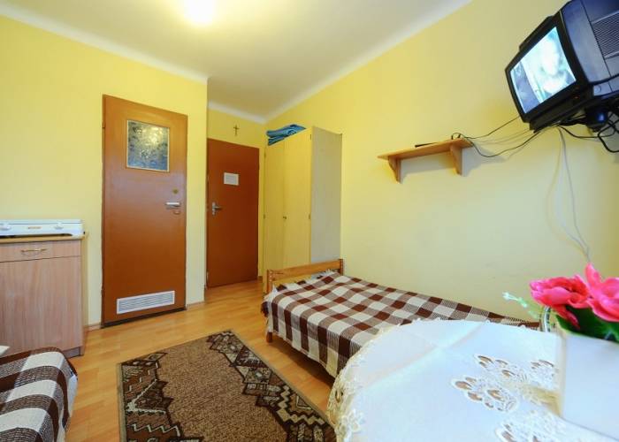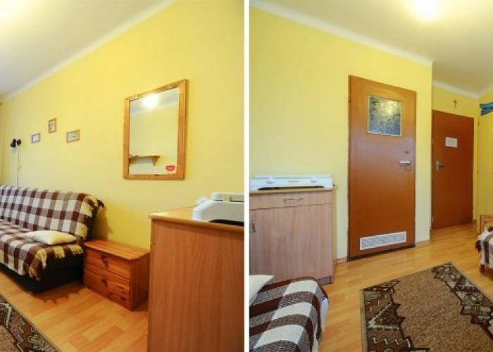 Oferujemy komfortowe 2 osobowe pokoje – każdy z łazienką i aneksem kuchennym oraz TV, dodatkowo na 4 pokoje jest duża lodówka oraz mikrofalówka. Jest to I piętro nowego domu. Na posesji jest parking.