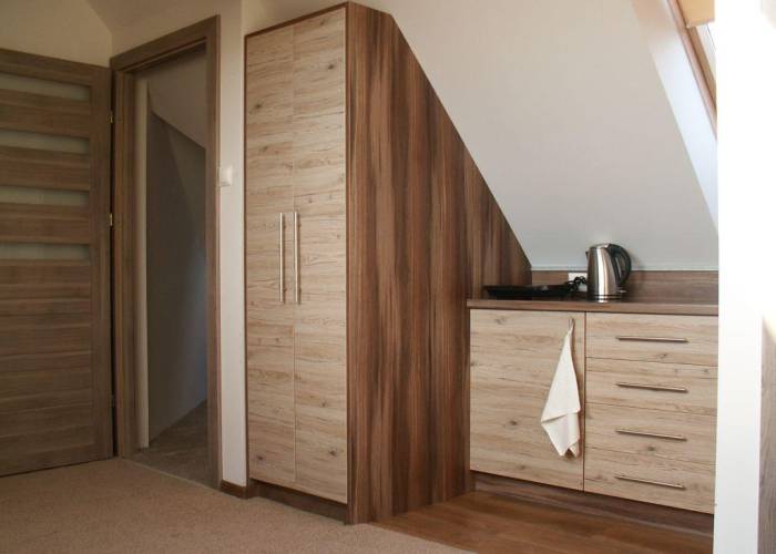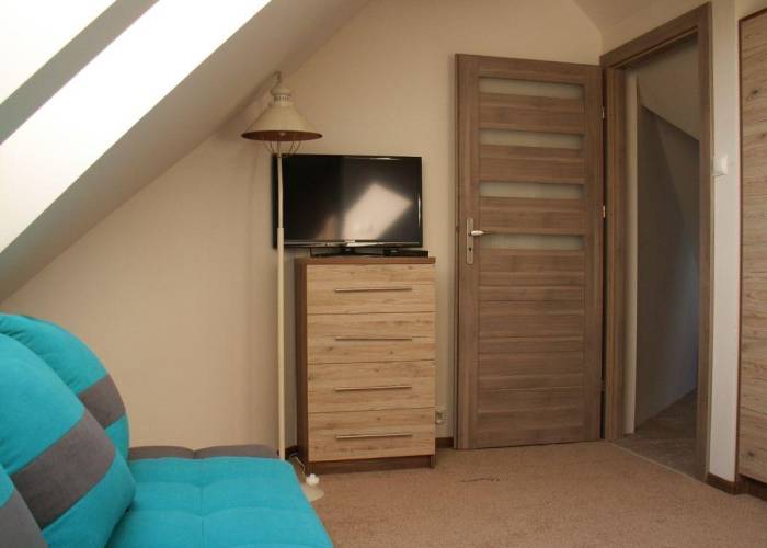 Na poddaszu oferujemy apartament typu studio dla 2-3 osób lub rodziny z dwójką małych dzieci.
