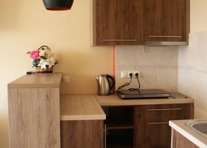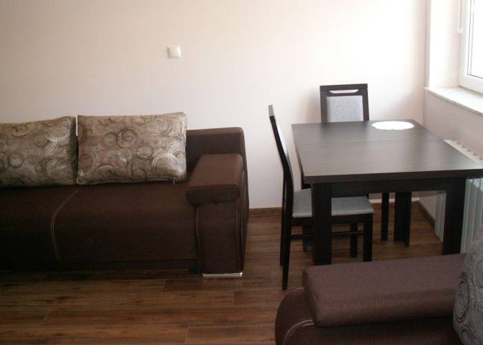 - pokój dzienny (ok. 14 m2) z kanapą oraz aneksem kuchennym,