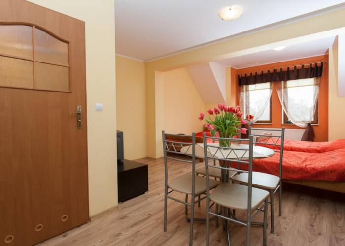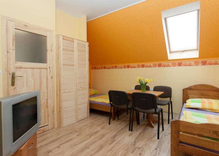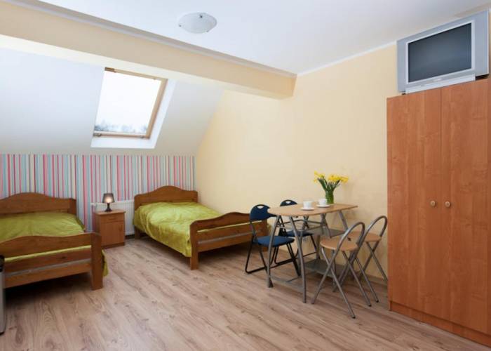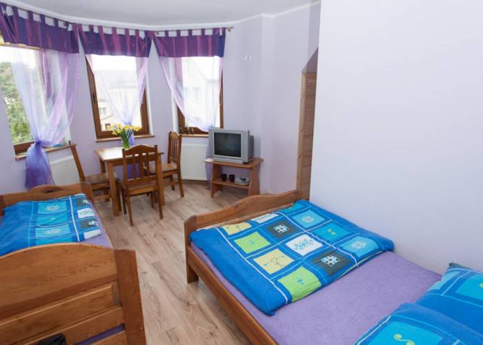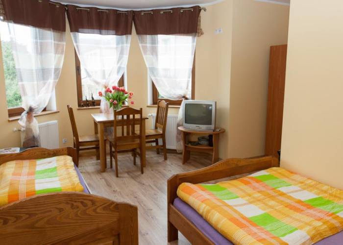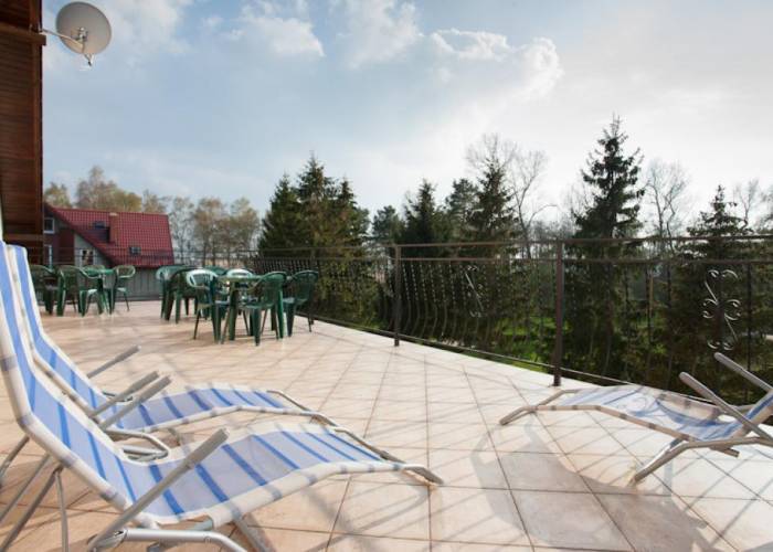 Na terenie obiektu znajduje się parking dla gości, bardzo duży taras również wyłącznie do dyspozycji gości. Pokoje wyposażone w pełne węzły sanitarne, TV SAT, koce plażowe, czajnik, sztućce, naczynia.