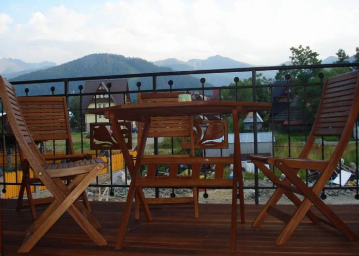Krajobrazami oraz malowniczymi wschodami i zachodami słońca można się zachwycać na balkonach zasiadając na krzesełkach przy stoliku z drzewa tekowego.