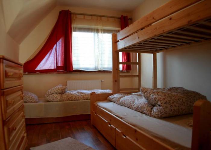 Sypialnia: łóżko piętrowe z dolną częścią dla 2 osób, a górną dla 1 osoby.