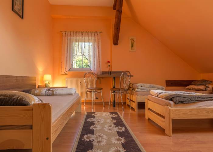 Mamy do zaoferowania trzy pokoje czterosobowe, istnieje możliwość wynajęcia całego pokoju dla np. 2 osób(cena nie zmienia się). W każdej sypialni znajduje się szafa na ubrania, szafki nocne, stolik oraz krzesła.