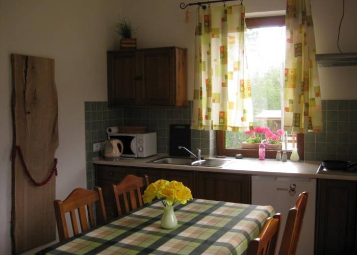 Zapraszamy do naszego domku mieszczącego się w Zawoi u podnóża Babiej Góry. Domek znajduje się na ogrodzonej posesji i składa się z dwóch niezależnych apartamentów z osobnymi wejściami. Apartament A : sypialnia , salonik z jadalnią , kuchnia , łazienka oraz obszerny przedpokój . Apartament B : sypialnia z podwójnym łóżkiem , sypialnia z dwoma pojedyńczymi łóżkami , salon z kominkiem i bezpośrednim wyjściem na taras , kuchnia z jadalnią , WC z łazienką , oraz drugie WC , narciarnia. Obydwie kuchnie są w pełni wyposażone ( kuchenka mikrofalowa , płyta elektryczna , czajnik bezprzewodowy , zestaw naczyń itp ) . W domku jest TV sat z ok. 100 programami. Pokoje wyposażone w nowe , drewniane meble. z okien roztacza się widok na Pasmo Jałowca i Policy . Posesja jest ogrodzona. Do dyspozycji Gości są meble ogrodowe , gril oraz wiata gdzie można postawić samochód lub zrobić grila w niepogodę . W ogrodzie jest tez mini plac zabaw dla dzieci .