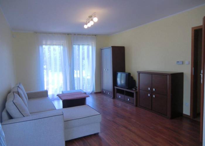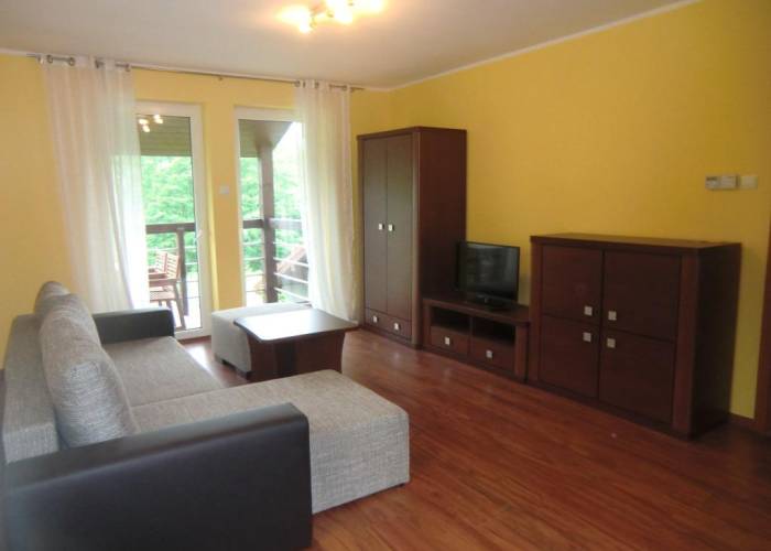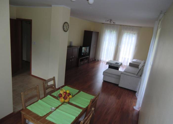 - pokoju dziennego umeblowanego . TV . Możliwość spania dla dwóch osób na rozkładanym komplecie wypoczynkowym o szerokości 1.4 m