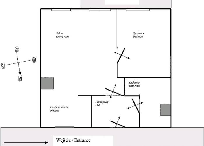 Opis apartamentu: mieści się na 1 piętrze, ma 48 m2 powierzchni