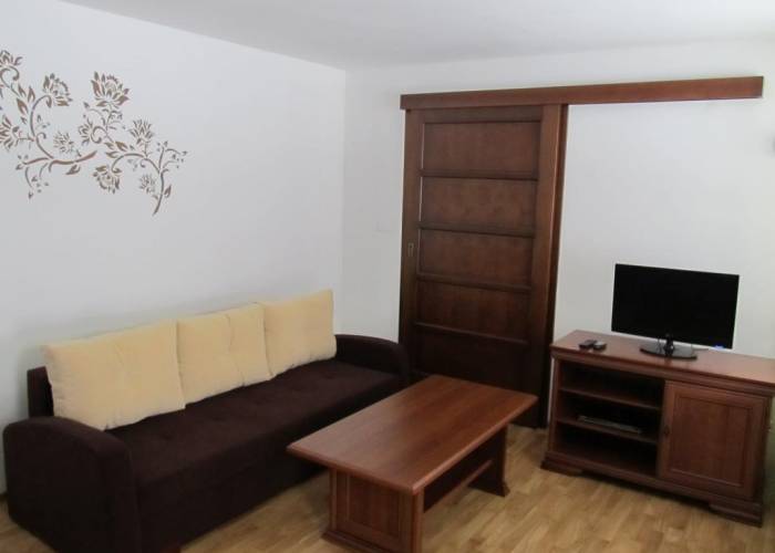 1 sofa (rozkładana dla 2 osób), 2 fotele, stolik, TV, komoda