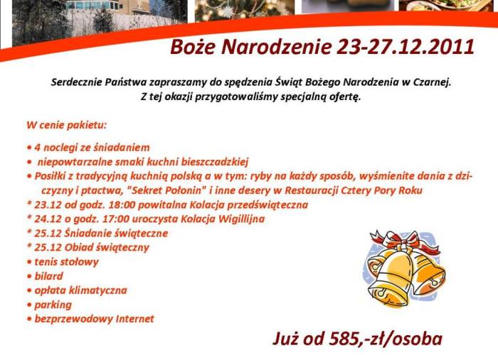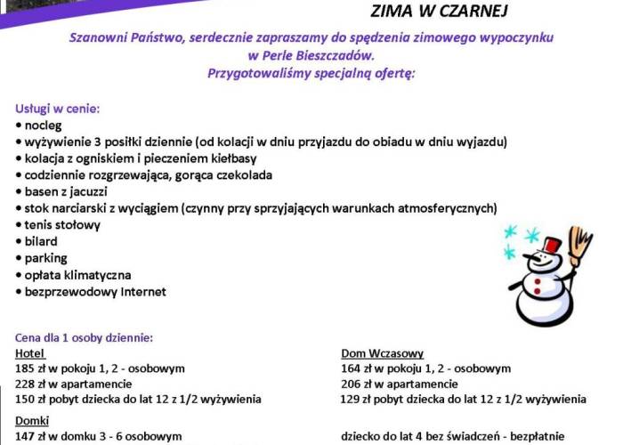 Hotel *** "Perła Bieszczadów" Conference Center & Spa usytuowany jest w miejscowości Czarna, w zachodniej części Bieszczadów. Oferuje on klimatyzowane pokoje z lodówką oraz bezpłatny bezprzewodowy dostęp do Internetu na terenie całego budynku. Na terenie obietku znajduje się również Dom Wczasowy (połączony z hotelem łącznikiem wewnętrznym) oraz całoroczne, drewniane domki z kominkami i apartamenty leśne.