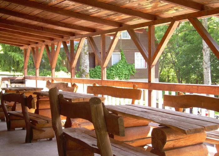 Na terenie obiektu znajdują się:  świetlica z TV, stołówka, sklepik, boisko do siatkówki, miejsce na ognisko, plac zabaw, kąpielisko z pomostem.