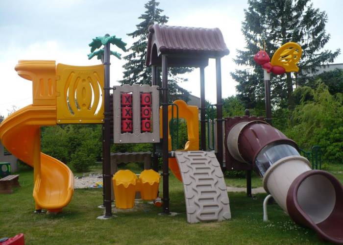 Domki znajdują się na dużym zielonym terenie (1ha), który porośnięty jest sosnami i świerkami. Teren jest ogrodzony, co zapewnia Państwu spokój i gwarancję bezpiecznego wypoczynku dzieciom. Na dzieci czeka nowoczesny i kolorowy, suuuper plac zabaw oraz piaskownica z morskim piaskiem, huśtawki, bujaki, jeździki i itp., a dla starszych dzieci istnieje możliwość wypożyczenia quada oraz jest boisko do gry w siatkówkę i koszykówkę.