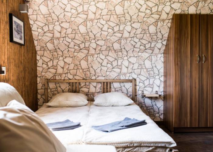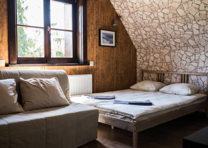 Pokoje z łazienkami; wszystkie pokoje wykończone są w drewnie i mają własny, niepowtarzalny charakter; istnieje możliwość dostawek.